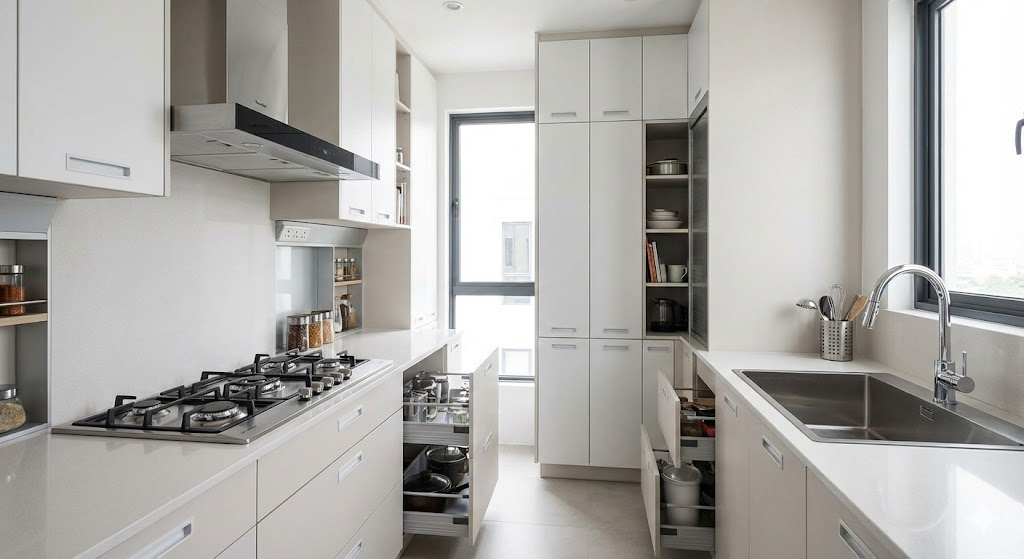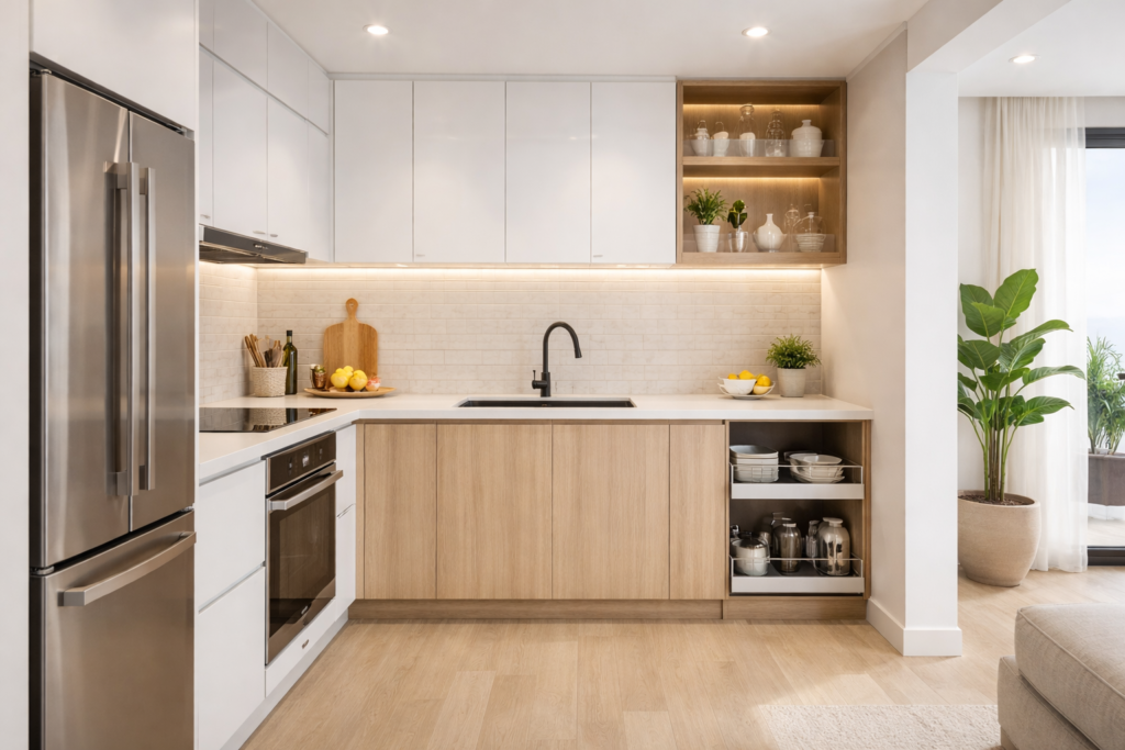 การผสมผสานระหว่างการจัดโซนที่เป็นระบบและการใช้เทคโนโลยีอุปกรณ์เสริมของชุดครัว Tecnostar ช่วยให้ครัวเล็กสามารถใช้งานได้ครบทุกฟังก์ชัน ทั้งสะดวก ปลอดภัย และเป็นระเบียบ ทำให้ทุกวันในครัวเป็นประสบการณ์ที่ง่ายและสนุกยิ่งขึ้น