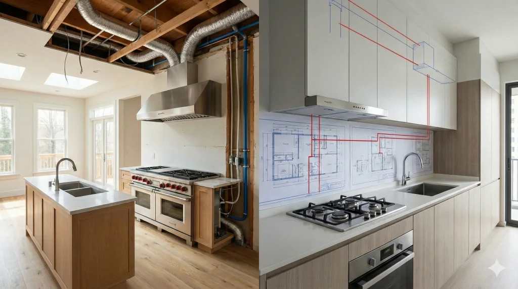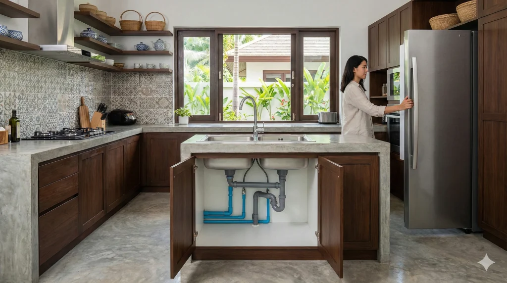 เมื่อวางระบบท่อและระบบไฟได้ถูกต้องตั้งแต่ต้น การติดตั้งเตา ซิงค์ และเครื่องดูดควันจะเป็นไปอย่างลงตัว ครัวใช้งานได้เต็มประสิทธิภาพ และไม่ต้องเสียค่าใช้จ่ายซ้ำซ้อนจากการรื้อแก้ในอนาคต