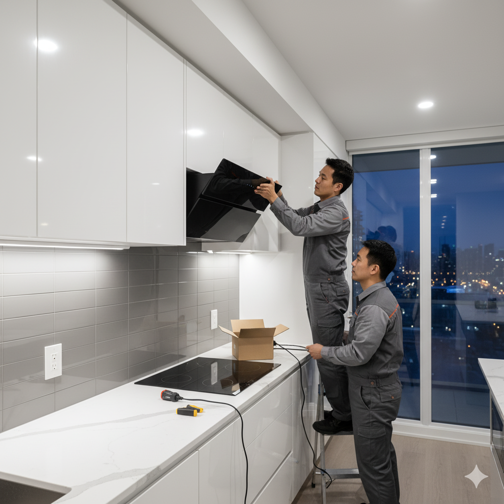 หมายเหตุ: วิธีติดตั้งขึ้นกับรูปแบบเครื่องดูดควัน (ติดผนัง, ใต้ตู้, หรือแบบตั้งโต๊ะ) นี่เป็นขั้นตอนคร่าวที่เจ้าของบ้าน/ช่างเล็ก ๆ ทำได้
