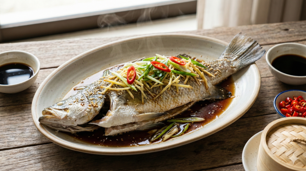- ปลานึ่ง (เช่น ปลากะพง หรือปลาทับทิม) 1 ตัว หรือแล่เป็นชิ้น