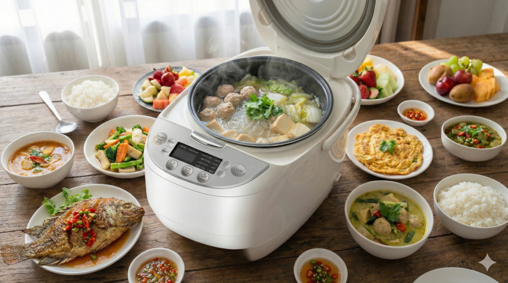 หม้อหุงข้าวไม่ใช่เพียงเครื่องใช้ไฟฟ้าสำหรับหุงข้าวเท่านั้น แต่ยังเป็นผู้ช่วยคู่ครัวอเนกประสงค์ที่สามารถรังสรรค์อาหารได้หลากหลายเมนู ตั้งแต่เมนูต้ม นึ่ง ผัด ตุ๋น อบ ไปจนถึงของหวาน เพียงเครื่องเดียวก็ช่วยให้การทำอาหารเป็นเรื่องง่าย ประหยัดเวลา และเหมาะกับทุกไลฟ์สไตล์ โดยเฉพาะผู้ที่มีพื้นที่ครัวจำกัดหรือมือใหม่หัดทำอาหาร