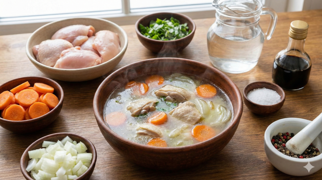 - ต้มต่อประมาณ 15–20 นาที จนไก่นุ่ม