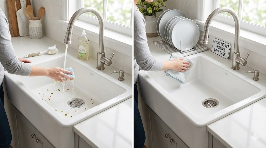 การดูแลอ่างล้างจานเซรามิกอย่างสม่ำเสมอ ด้วยการล้างทันทีหลังใช้งาน เช็ดให้แห้ง และหลีกเลี่ยงการกระแทก จะช่วยให้อ่างคงความสวยงาม สะอาด และใช้งานได้ยาวนานเหมือนใหม่