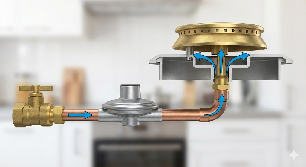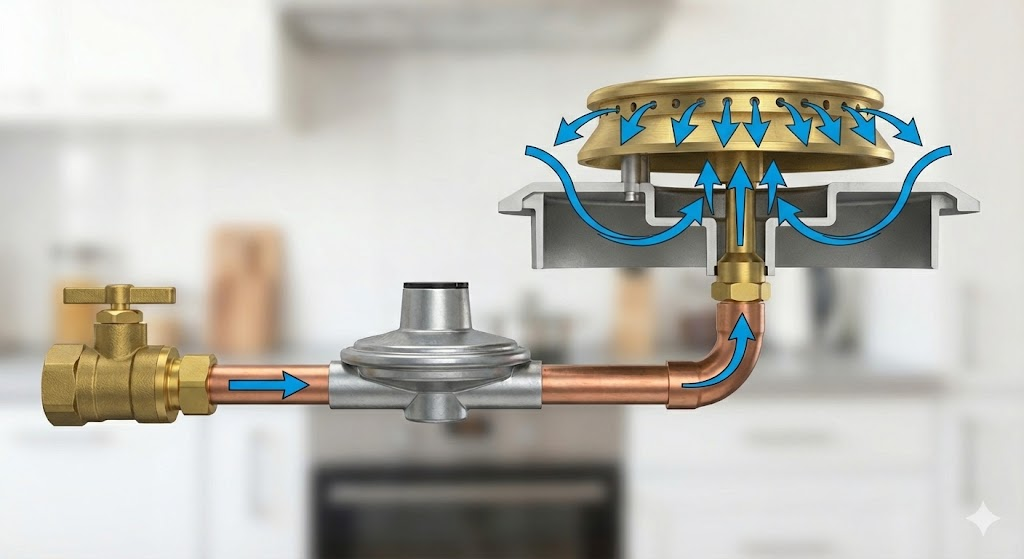 เพื่อให้เข้าใจภาพรวมชัดเจนมากขึ้น มาดูการทำงานแต่ละขั้นตอนอย่างละเอียดตั้งแต่แก๊สเริ่มไหล จนเกิดเปลวไฟที่หัวเตา