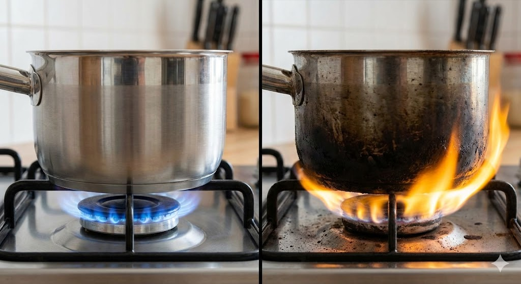 ถ้าก้นหม้อเริ่มดำเร็วผิดปกติ แสดงว่าอากาศไม่พอ ควรตรวจสอบและทำความสะอาดทันที
